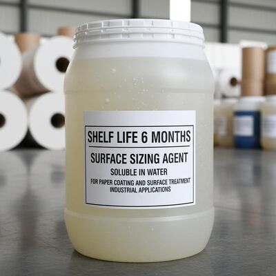 هذا الوسيط لتحديد حجم السطح مناسب بشكل خاص للتطبيقات التي تتطلب تعزيز قوة السطح وتحسين قابلية الطباعة لمنتجات الورق.طبيعته الأنيونية وذوبانها في الماء تسمح لها بالاندماج بسهولة في عملية التحديد، مما يوفر توافقًا ممتازًا مع العديد من تركيبات لب الورق. يضمن نطاق pH للعامل من 4-6 الحفاظ على استقراره وفعاليته أثناء الاستخدام.بينما مظهره السائل الأبيض اللبناني إلى الأصفر الفاتح يشير إلى نقائه واستعداده للتطبيق الصناعي.
